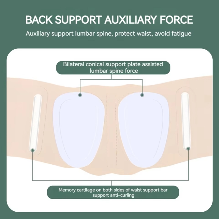 1. The waist belt is wrapped in all directions, with double-sided conical support plates + memory cartilage support strips on both sides of the waist to assist in supporting the lumbar spine and protect the waist from injury