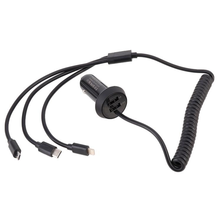 Universal Car 3 in 1 Quick Charger Dual Port USB Charger Power Outlet Adapter, Cable Length: 55cm