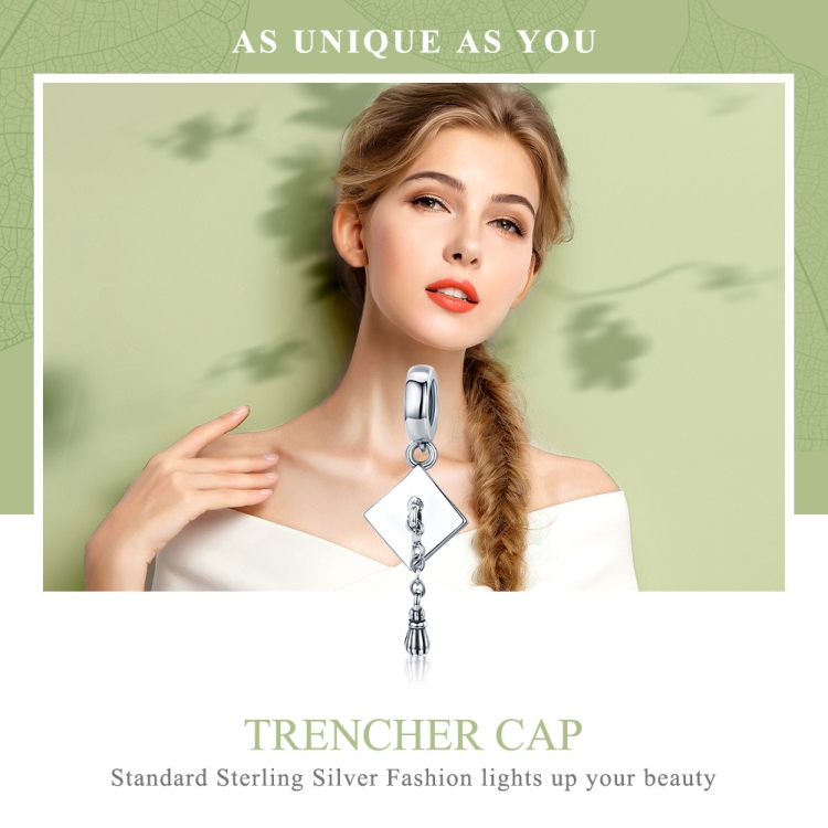 University Hat Charm S925 Sterling Silver Loose Beads DIY Bracelet Aaccessories