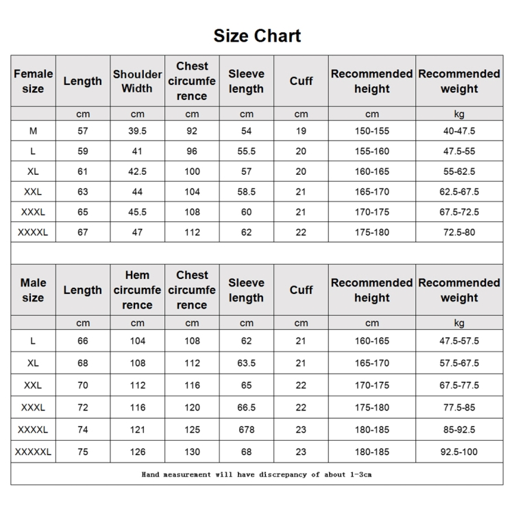 6. M, L, XL, XXL, XXXL, XXXXL, XXXXXL sizes are available to meet the needs of buyers of different sizes.
