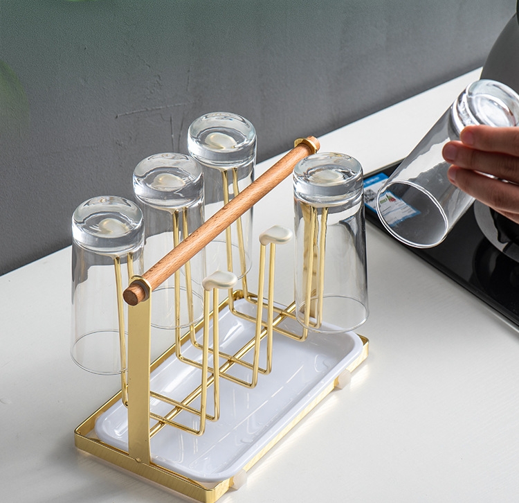 Upside Down Wrought Iron Cup Holder Water Cup Metal Shelf With Tray