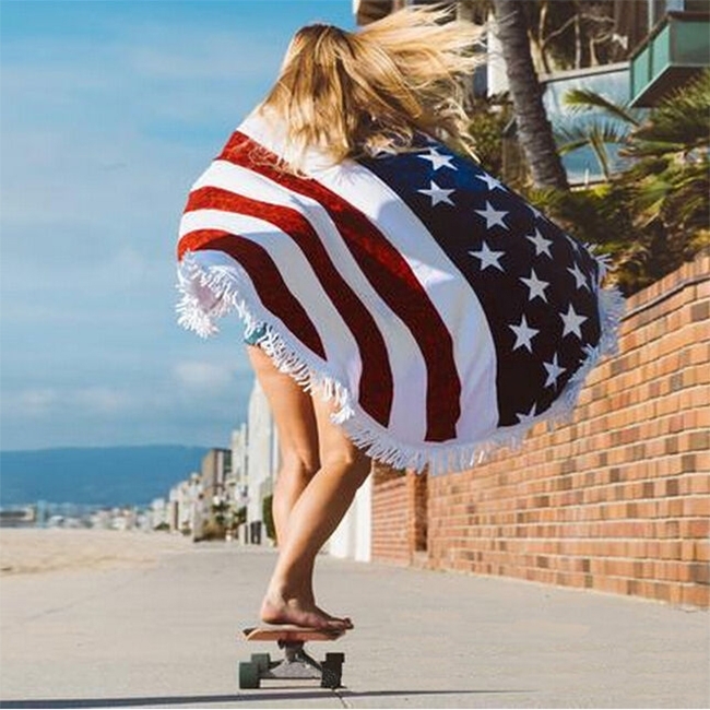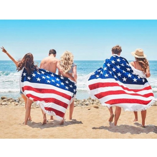 US Flag Pattern Tassel Round Summer Bath Towel Sand Beach Towel Shawl Scarf, Size: 150 x 150cm