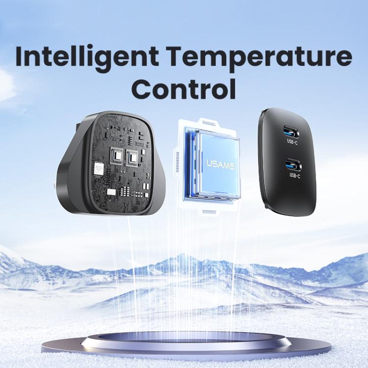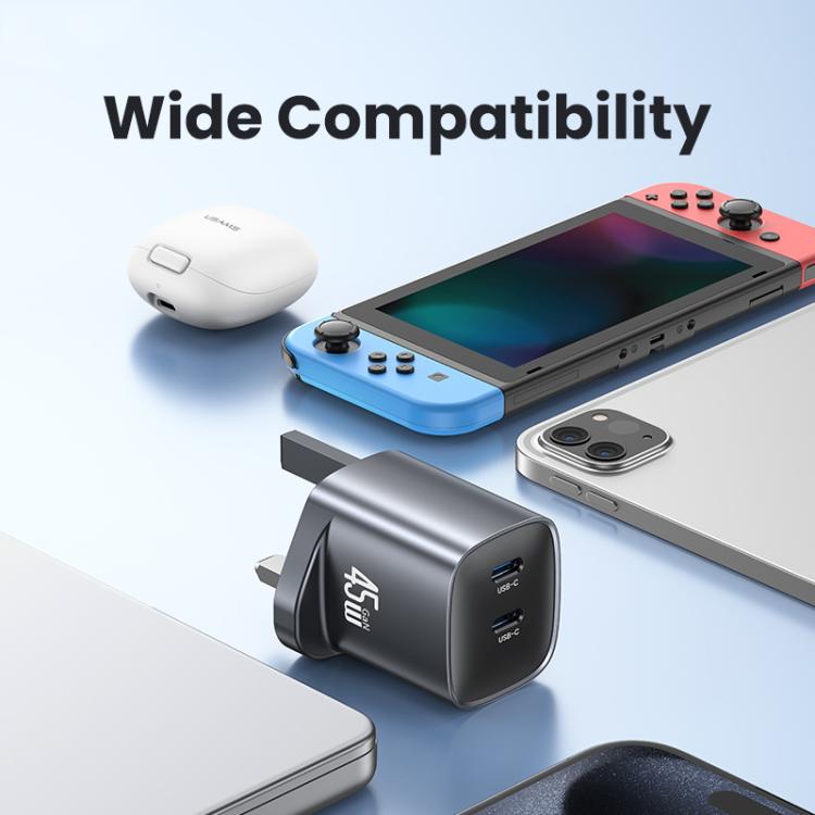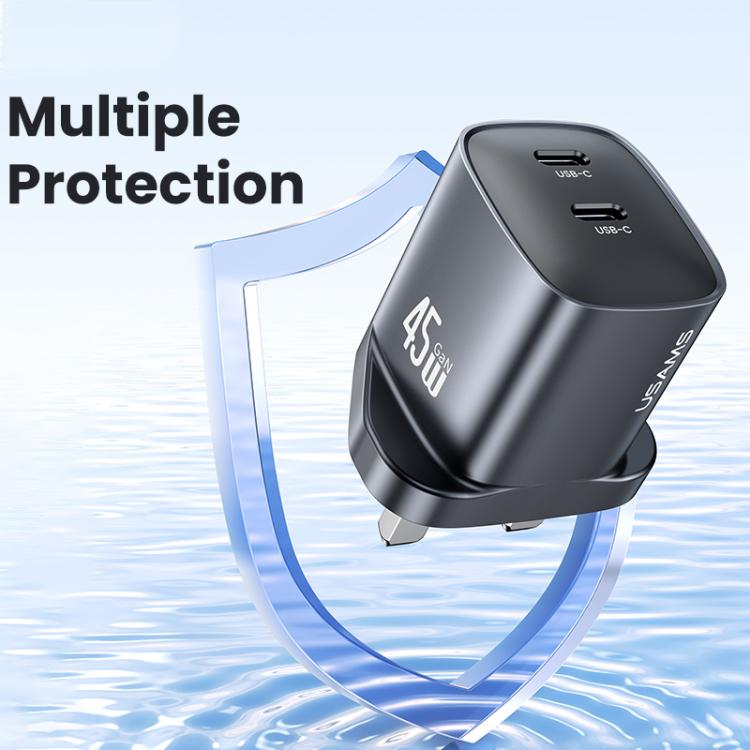 USAMS CC307 T66 45W Dual USB-C / Type-C GaN Fast Charger, UK Plug