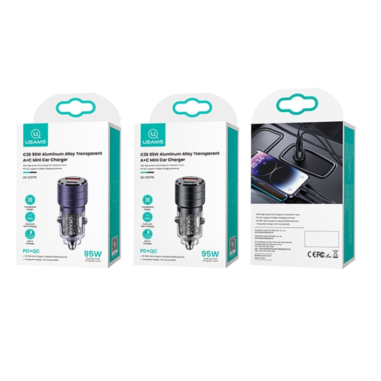 USAMS US-CC176 C36 Aluminum Alloy Transparent Mini Car Charger