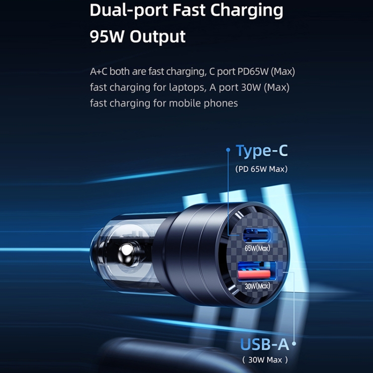 1. USB-A+USB-C dual-port simultaneous fast charging, the total power can reach 95W