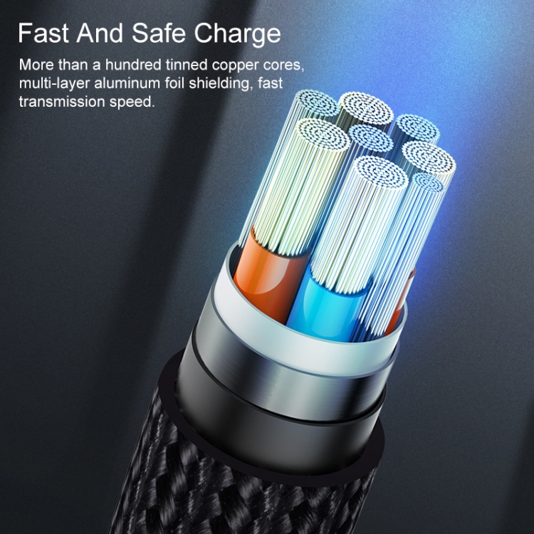 USAMS US-SJ448 U55 2A 8 Pin Aluminum Alloy Weave Charging Cable, Length:1m