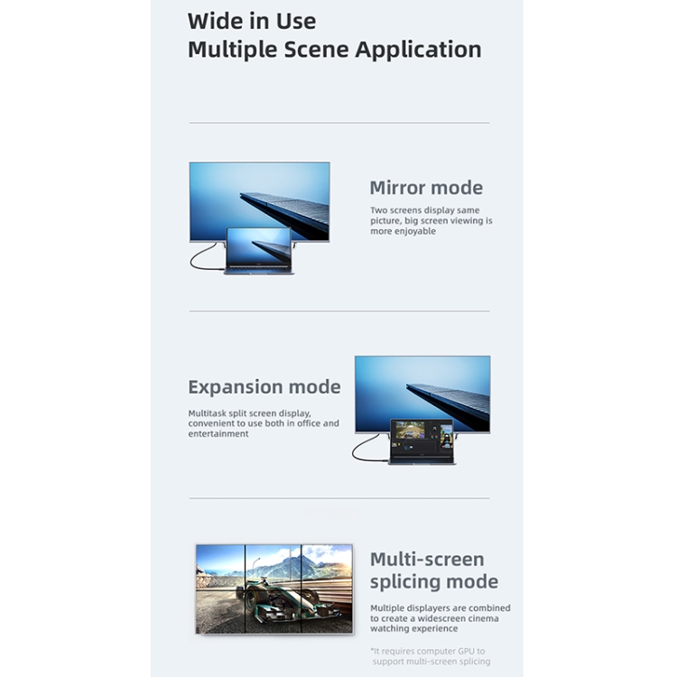 | Option | DP to HDMI, DP to DP |