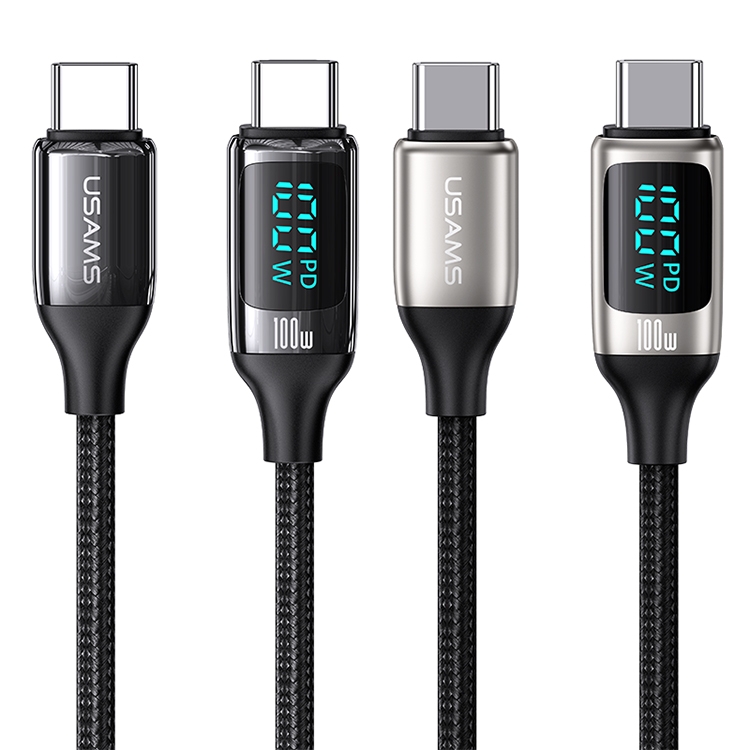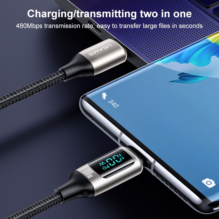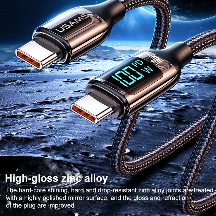 USAMS US-SJ546 U78 100W Type-C / USB-C to Type-C / USB-C Aluminum Alloy Digital Display Fast Charging Data Cable, Length: 1.2m
