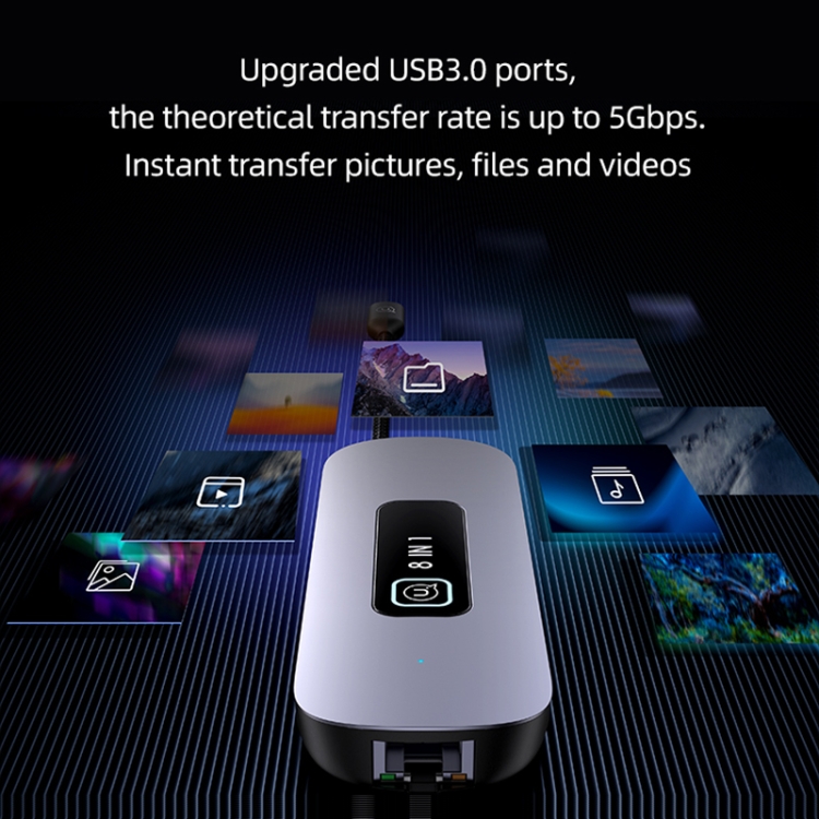 1. 8 interfaces: USB3.0x3, SD card slot x1, TF card slot x1, Type-Cx1, HDMIx1, RJ45x1