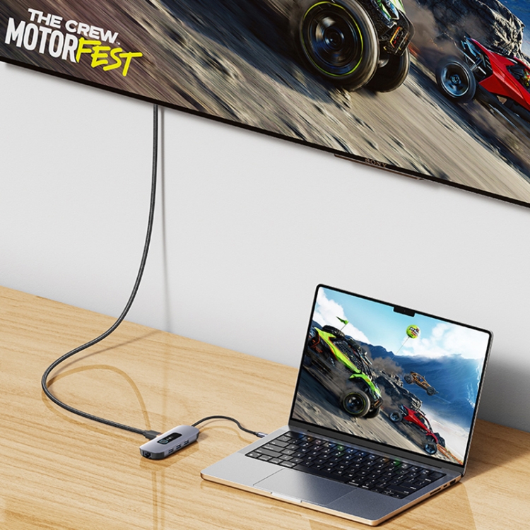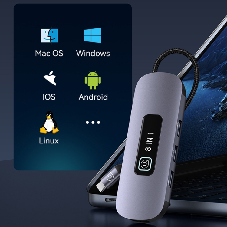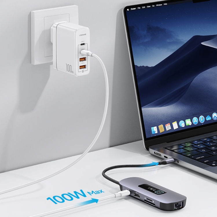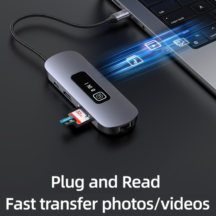 USAMS US-SJ643 PD100W 8 in 1 Aluminum Alloy Multifunctional Type-C HUB with Light