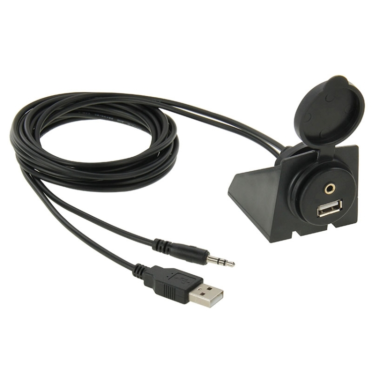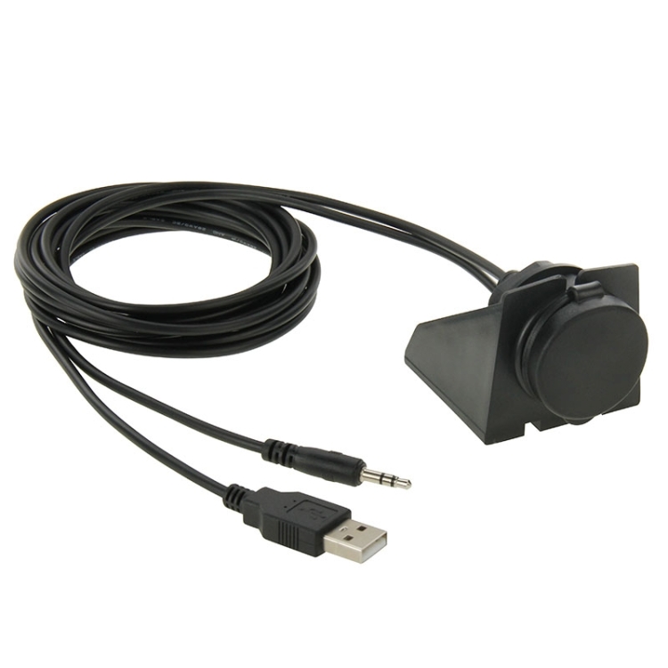 USB 2.0 & 3.5mm Male to Female Extension Cable with Car Flush Mount, Length: 2m