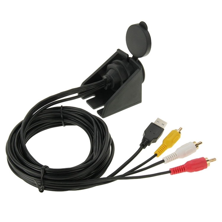 USB 2.0 & 3 RCA Male to USB 2.0 & 3.5mm Female Adapter Cable with Car Flush Mount, Length: 2m