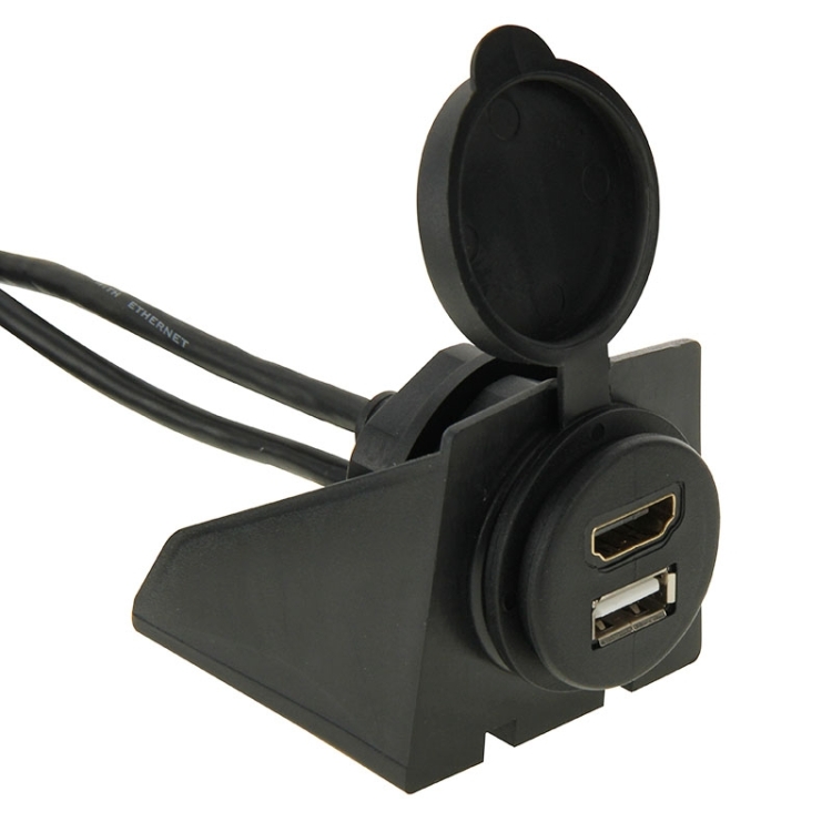 USB 2.0 & Micro HDMI (Type-D) Male to USB 2.0 & HDMI (Type-A) Female Adapter Cable with Car Flush Mount, Length: 2m