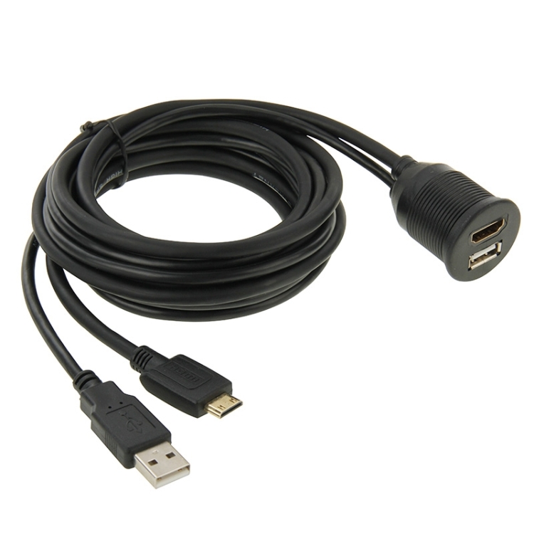 USB 2.0 & Mini HDMI (Type-C) Male to USB 2.0 & HDMI (Type-A) Female Adapter Cable with Car Flush Mount, Length: 2m