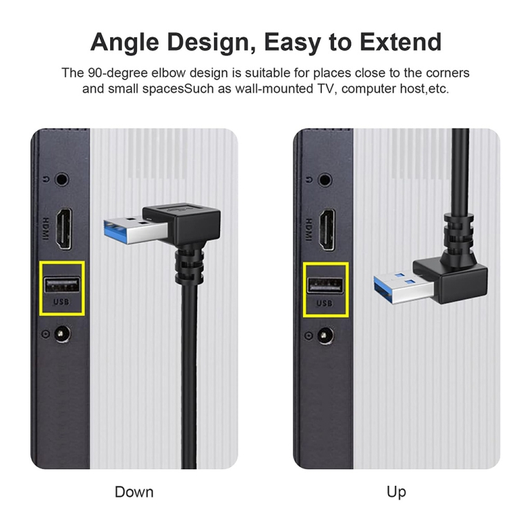USB 3.0 Down Angle 90 degree Extension Cable Male to Female Adapter Cord, Length: 15cm