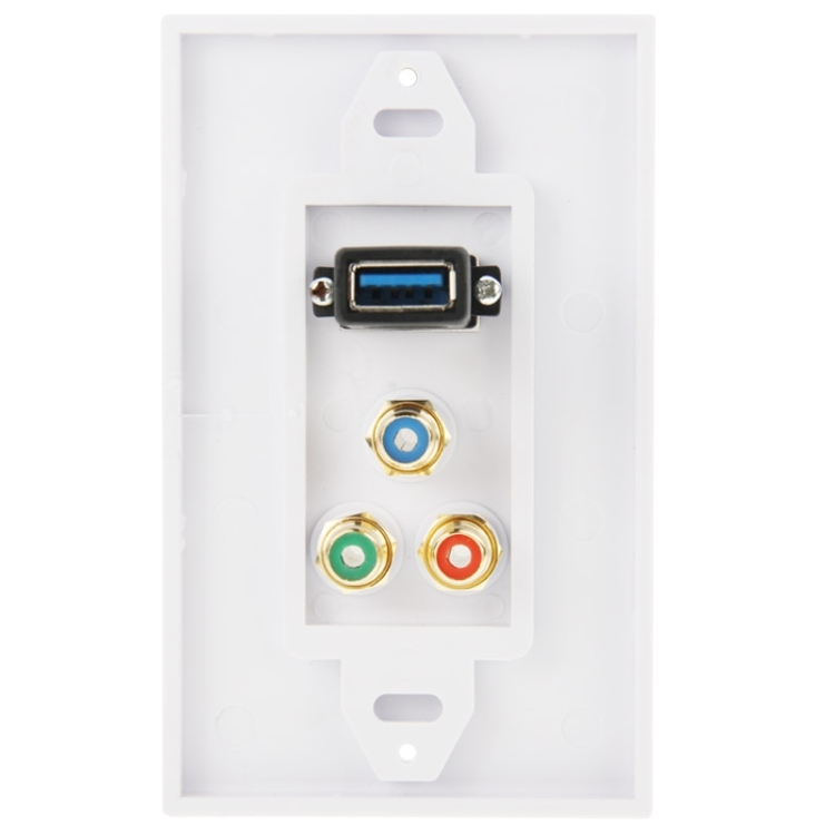 USB 3.0 Female Plug + 3 RCA Female Plugs Wall Plate Panel