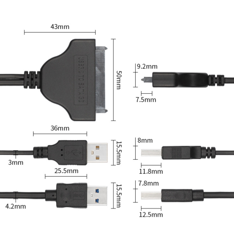 USB 3.0 to SATA 3G USB Easy Drive Cable, Cable Length: 15cm