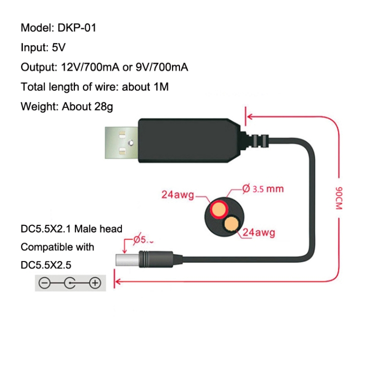 1. USB mobile power booster cable 9V/12V, suitable for USB lights, USB fans, radiators, 5V mini speakers, etc.