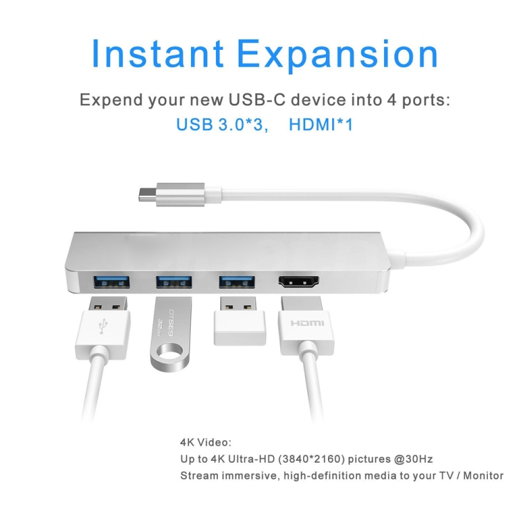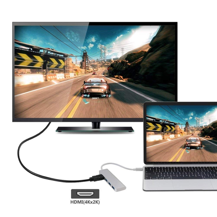 USB-C Hub, Type-C Adapter To HDMI,3 USB 3.0, Portable Aluminum USB C Dongle For MacBook Pro 2018/2017/2016 Chromebook Pixel, DELL XPS13