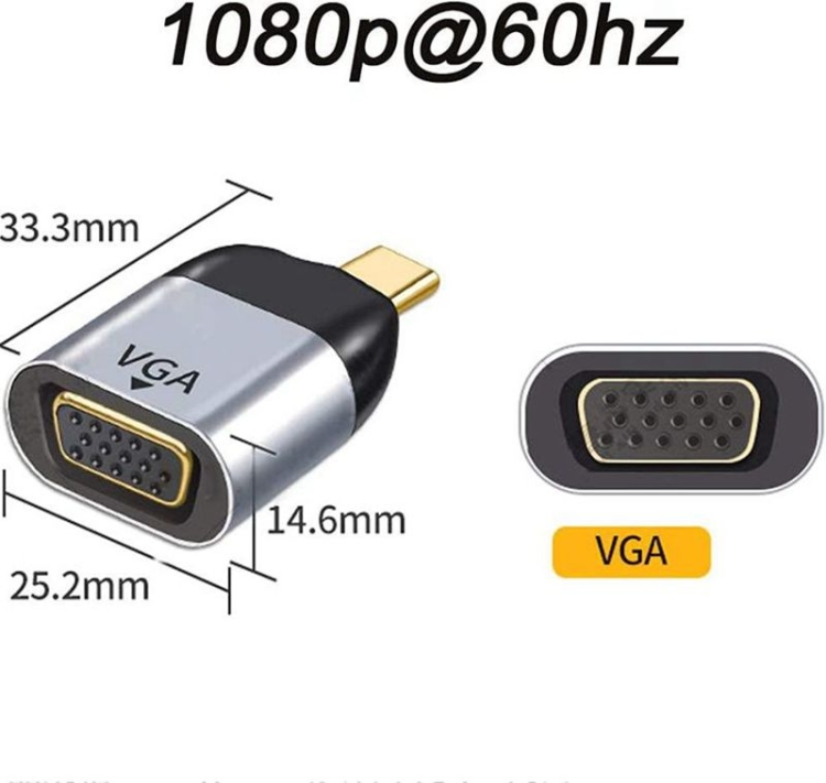 2.Plug and Play : No drive required, This USB C-type to VGA adapter can expand more space, whether you are working or playing. Mini size design and can be carried with you. Aluminum alloy shells bring excellent texture.