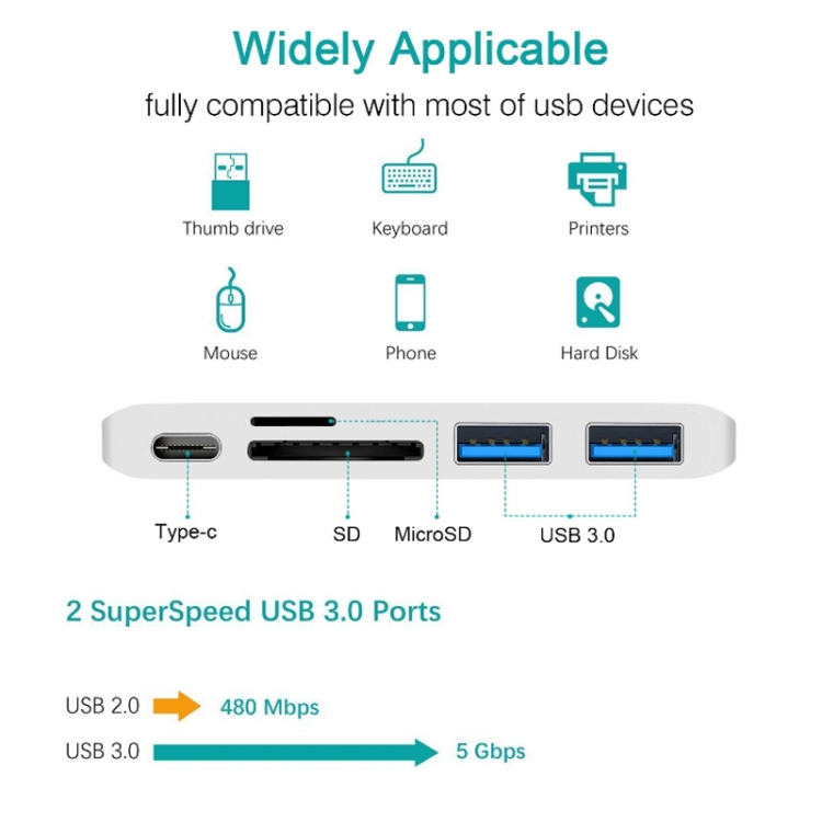 3. High-speed 40gbps USB 3.1 Type-C charging interface and data transfer, 1 USB 3.1 port (Type-C data transfer), 2 USB 3 ports, 1 SD memory card reader, 1 microSD memory card