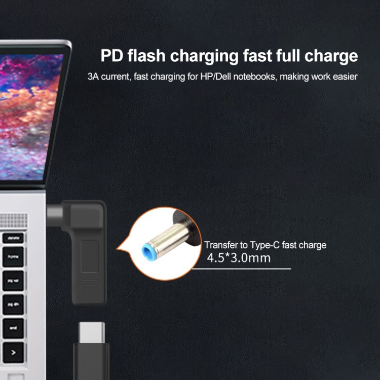 1. Type-C female to 4.5 x 3.0mm male plug notebook adapter connector.