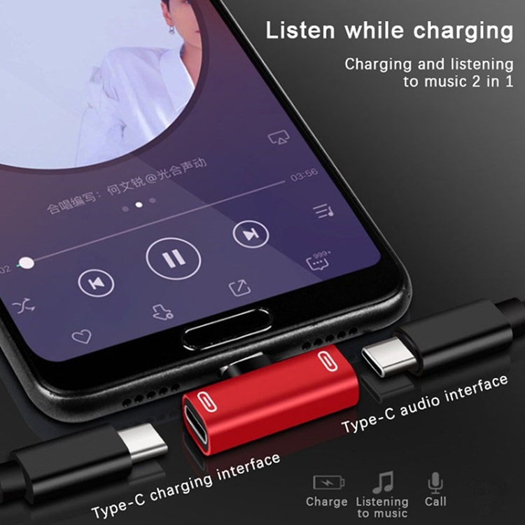 USB-C / Type-C Male to Type-C Female + 3.5mm Adapter, Supports Charging & Earphone