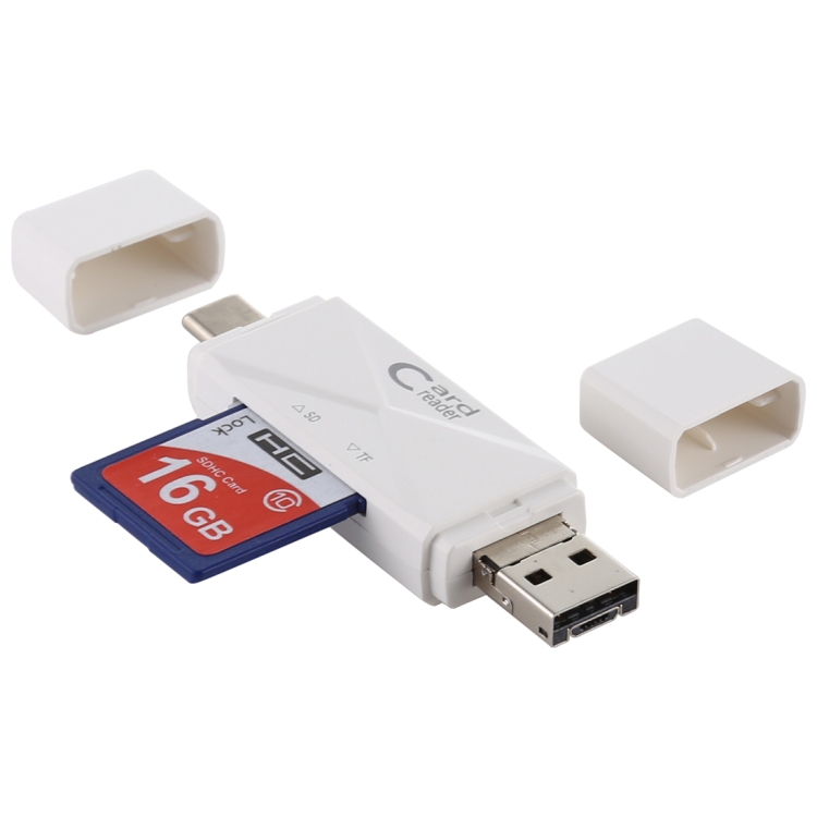 USB-C / Type-C + SD + TF + Micro USB to USB 2.0 Card Reader