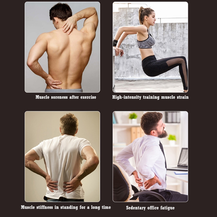 1. Suitable for muscle soreness after exercise, muscle stiffness when standing for a long time, muscle strain during high-intensity training, physical and mental fatigue from sitting for a long time in the office, etc.