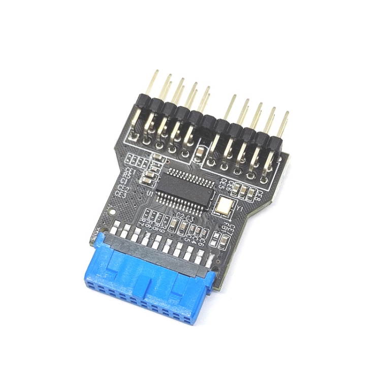 1. Purpose: The motherboard has a USB3.0 interface, but the chassis does not have a front USB3.0 interface. You can use the USB 3.0 19pin to dual 9Pin adapter to switch to the front USB2.0 interface