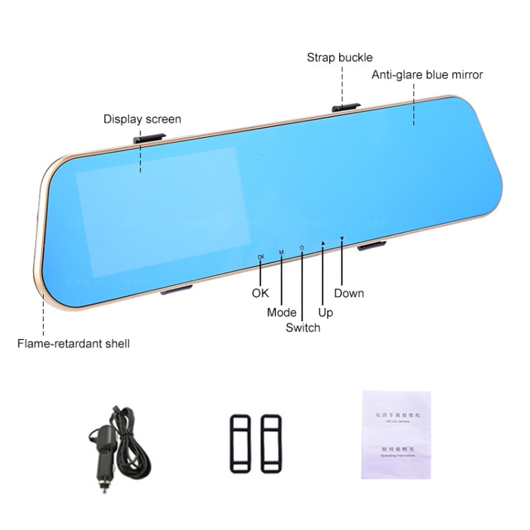 4. Main functions: reversing image, parking monitoring, playback viewing, loop recording, off-screen recording, 170 degree wide angle