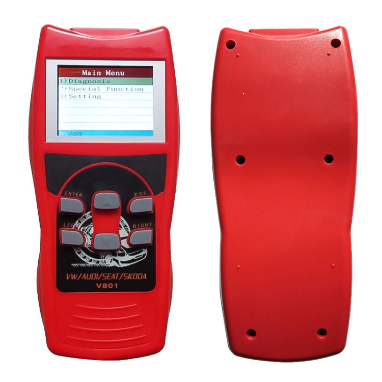 1. V801 scanner is a handle tool delicately designed for user to pinpoint engine, transmission, ABS and airbag faults. It is an ideal scanner for ALL VW, Audi, Seat and Skoda series vehicle, and can detect over 130 systems. It supports the Controlled Area Network (TP-CAN) and New UDS protocol.