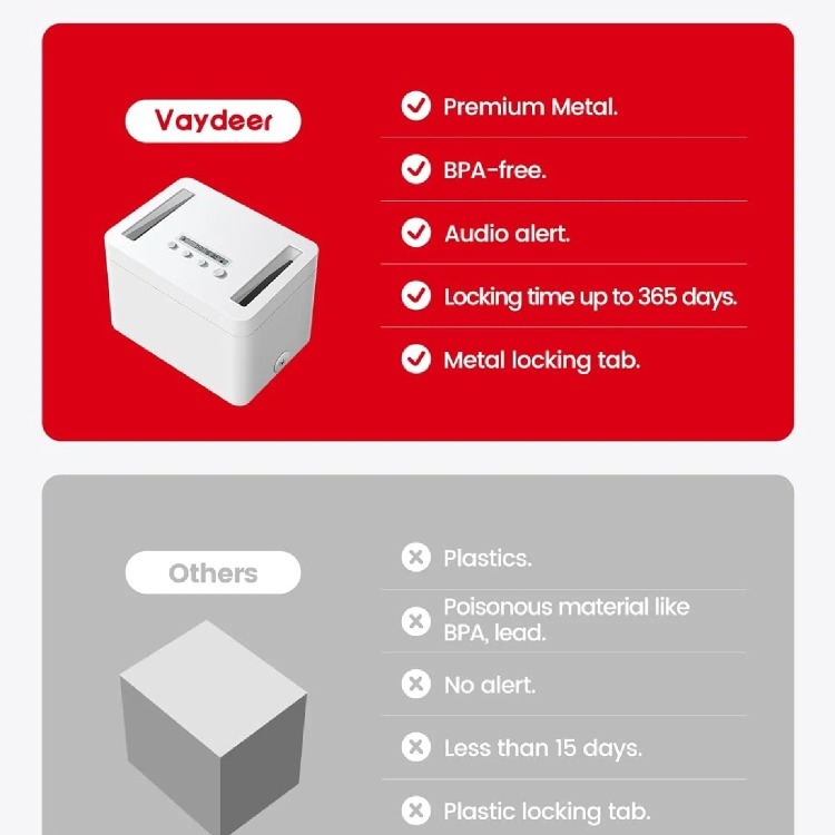 Vaydeer Metal Timed Self-Control Phone Lock Box With Child Lock And LED Display