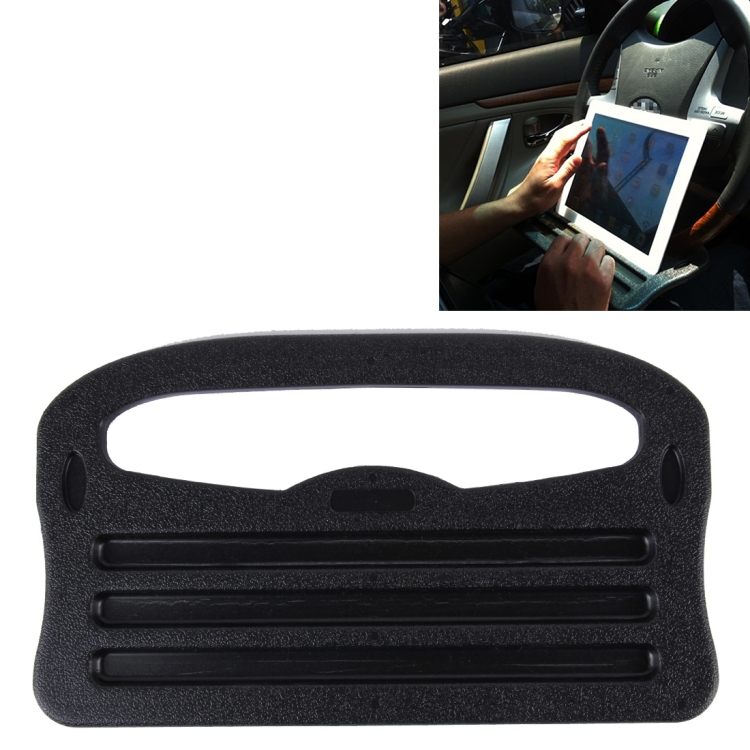 2. This vehicle portable desk can easily mount to most car steering wheels, providing a handy platform for iPad, tablet, writing note, food, drink, etc