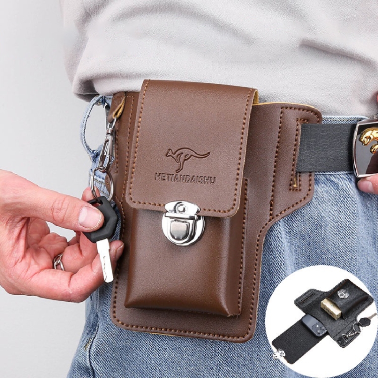 Vertical PU Leather Mobile Phone Waist Bag for Men