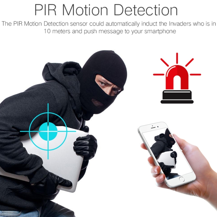 2. Support PIR motion detection, when some moving object are in the range of detection, the camera will auto start recording.