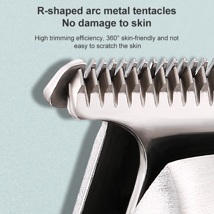 12. Accessories: USB charging cable x1, limit comb x3 (2mm/3mm/4mm), cutter head protective cover x1, cleaning brush x1, English manual x1