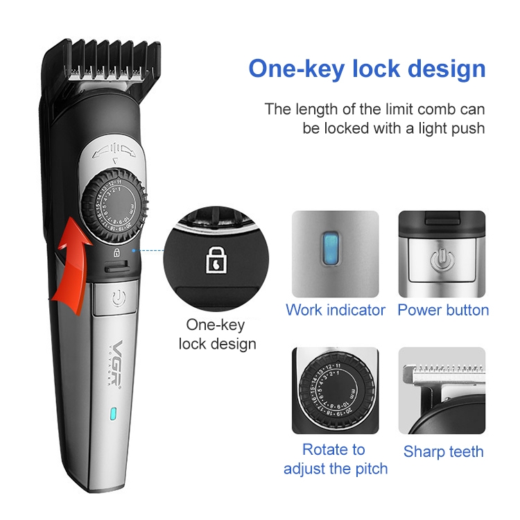 VGR V-088 5W USB Stylish Man Stylish Sharp Tool Hair Clipper with Multi-size Fine Adjustment