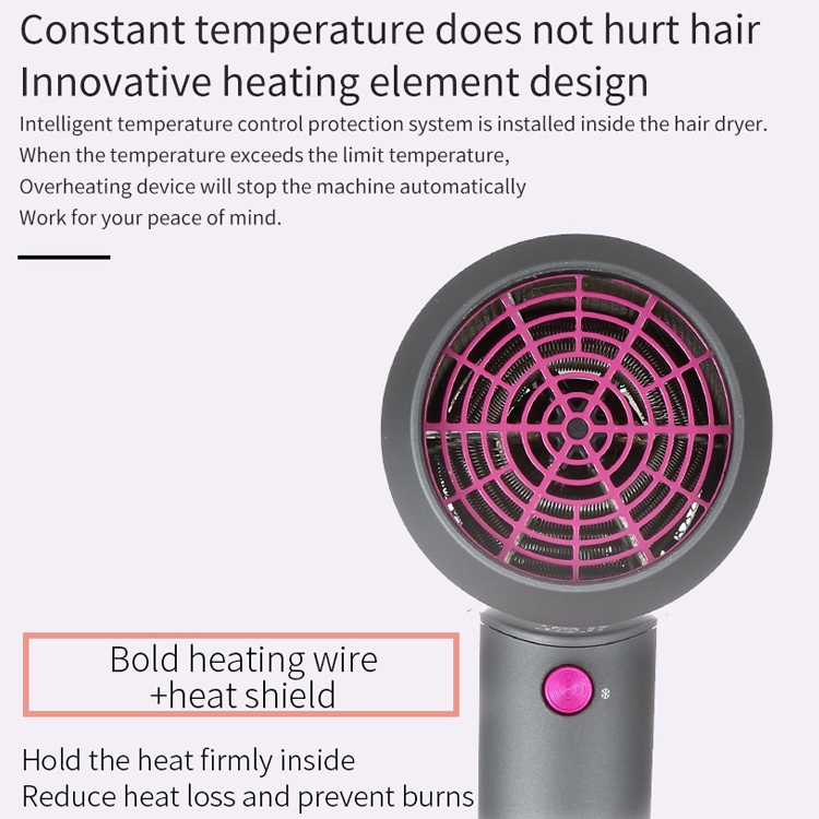 6. An intelligent temperature control protection system is installed inside the hair dryer. When the temperature exceeds the limit temperature, the overheating device will automatically stop the machine, allowing you to use it with peace of mind