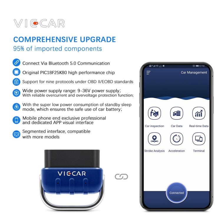 Viecar VP005 Car Mini OBD Fault Detector V2.2 Bluetooth Diagnostic Tool with 25K80 327