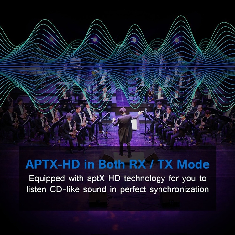 8. Support dual stream (TX mode supports one transmitter to connect two Bluetooth speakers or headphones at the same time to use one CODEC)