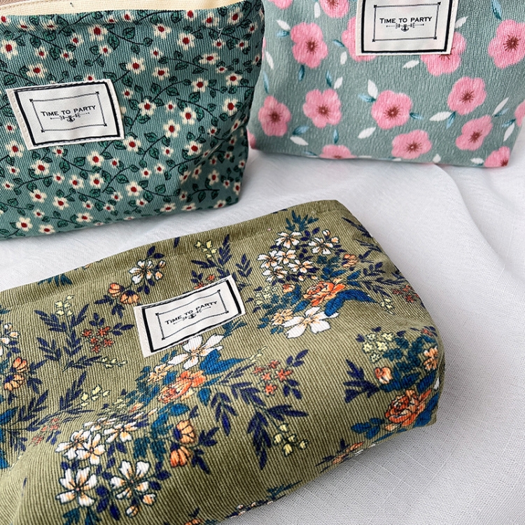 Vintage Corduroy Cosmetic Bag Flower Travel Portable Washing Bag