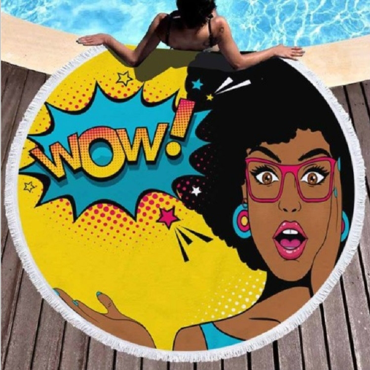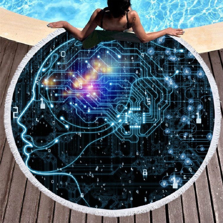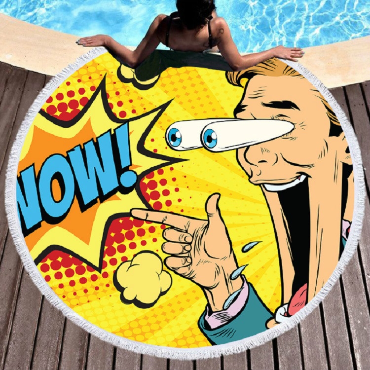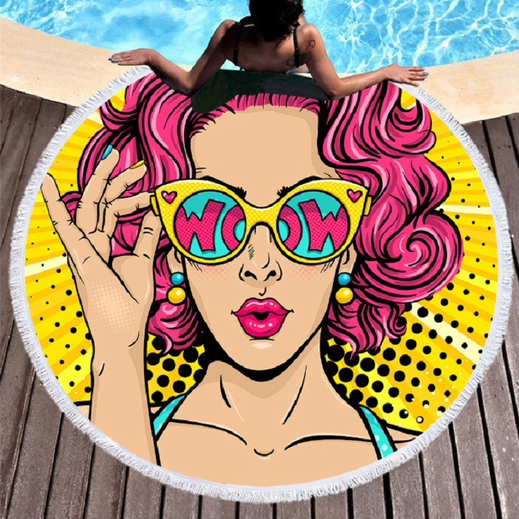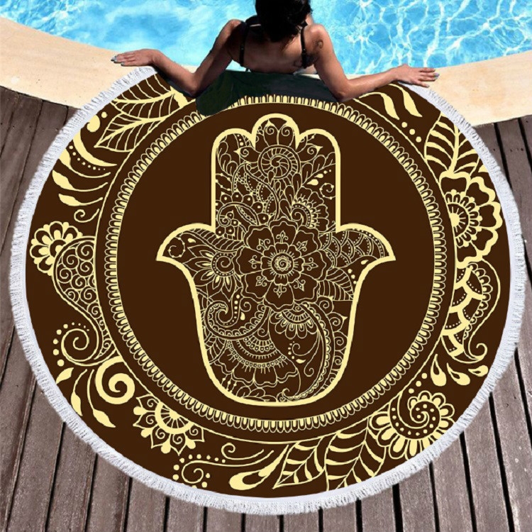 Vintage Round Printed Beach Towel Microfiber Swimming Pool Quick-Drying Cushion