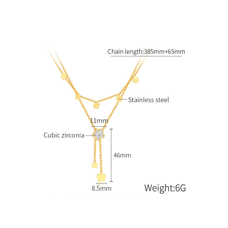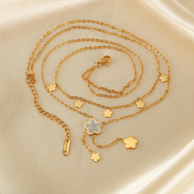 Vintage Simple Double Layers Stacked Tassel Flower Pendant Stainless Steel Necklace