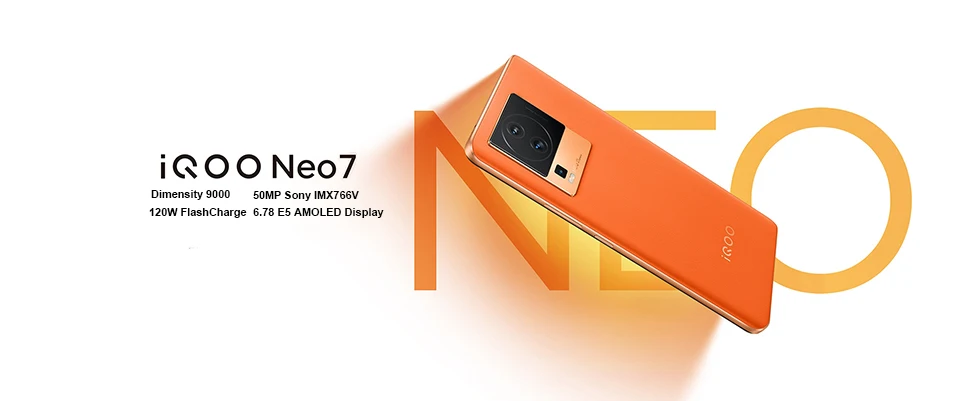 VIVO IQOO Neo7 8GB RAM 256GB ROM 5G 6.78inch AMOLED MTK Dimensity9000+ 5000Mah 120W Super Charge 50MP Android 13 NFC, Orange