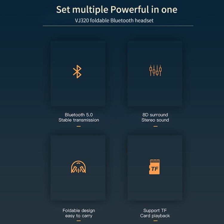 VJ320 Bluetooth 5.0 Head-mounted Foldable Wireless Headphones Support TF Card with Mic