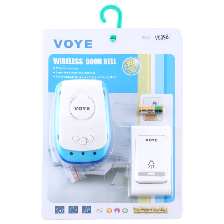 VOYE V009B Home Music Remote Control Wireless Doorbell with 38 Polyphony Sounds, US Plug