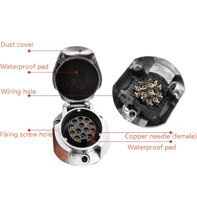 VS1131E 13P 12V Aluminum Alloy Trailer Plug Socket EU Plug