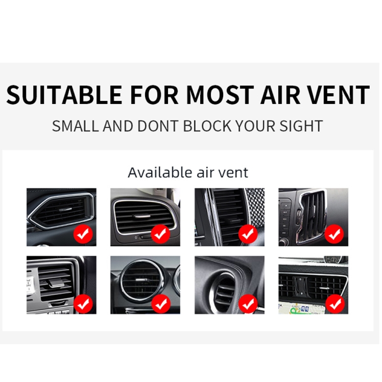 7. Applicable to air outlet: this air outlet vehicle mounted wireless bracket is small and light, does not occupy a position, so that you can drive more safely during hands-free call and positioning navigation. 360 ° three-dimensional rotation, good magnetic attraction effect,