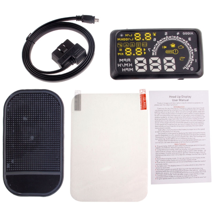 W02 5.5 inch Car OBDII HUD Fuel Consumption Warning System Vehicle-mounted Head Up Display Projector with LED